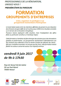 Aux professionnels de la rénovation, le Pays Vesoul Val de Saône vous propose de vous regrouper. En participant à l'expérimentation Groupements d'Entreprises vous bénéficierez ainsi d'un accompagnement, de formations et de conseils.